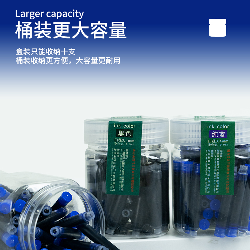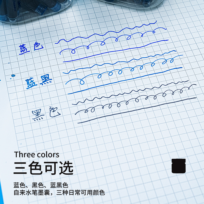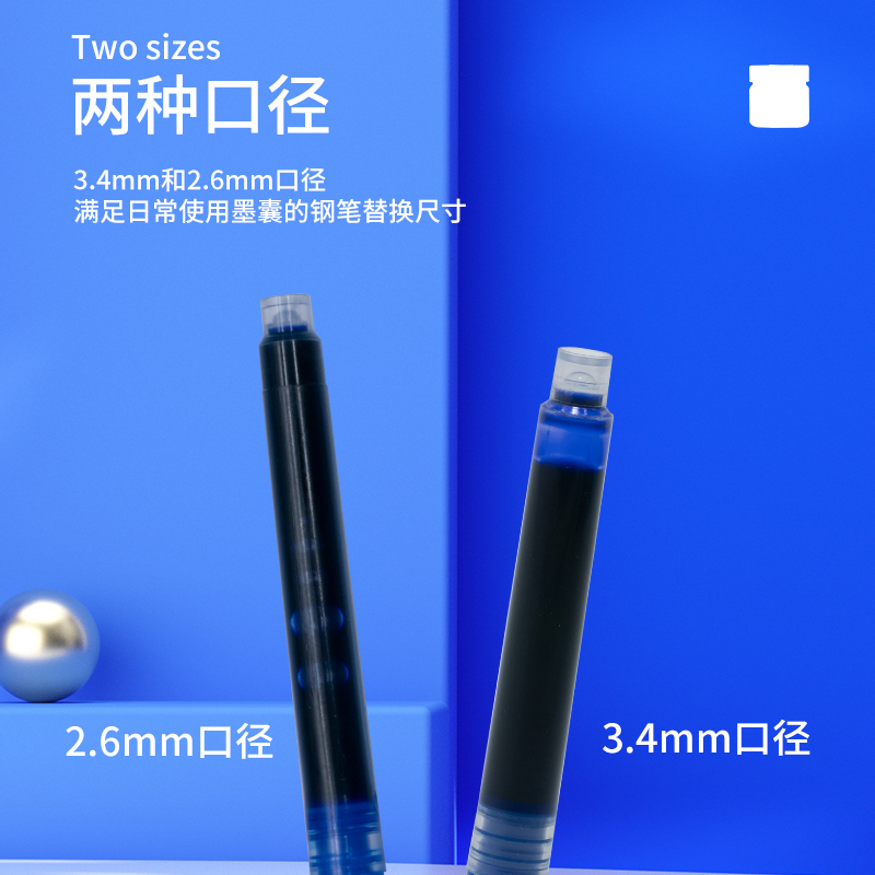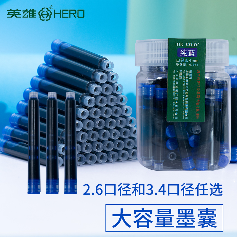 不可擦墨囊速干晶蓝纯蓝墨蓝黑色3.4mm通用027墨囊胆墨兰2.6mm细管小口径钢笔可替换英雄蓝色359小学生26mm