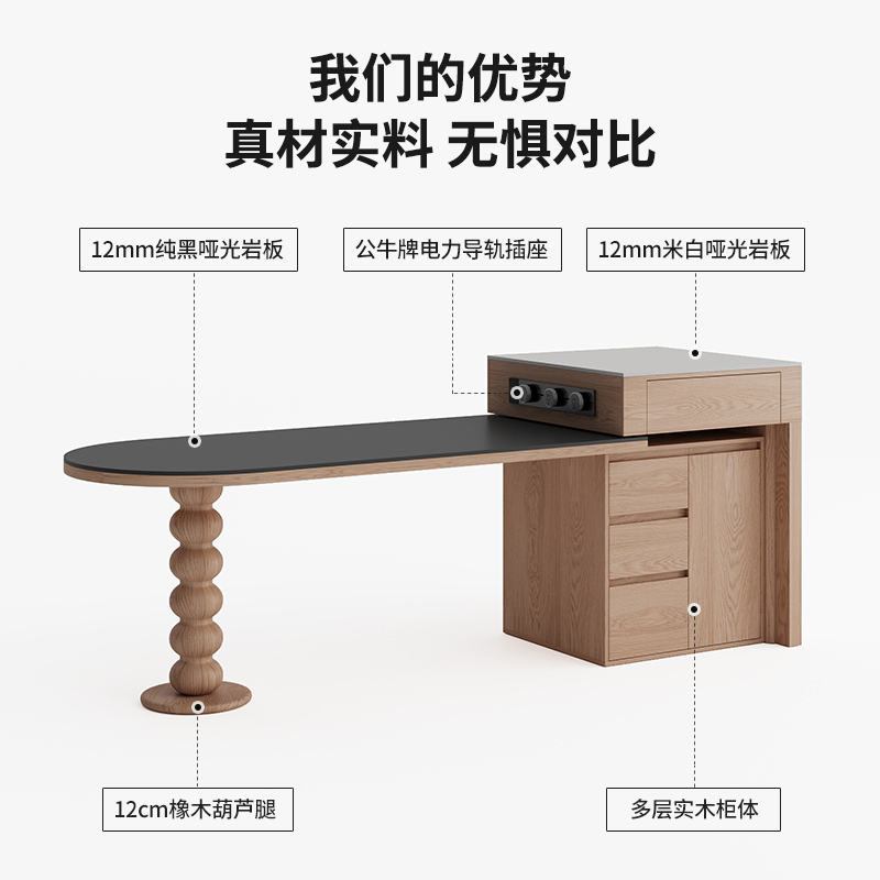 法式中古风可伸缩岛台餐桌一体家用实木靠墙半圆岛台意式岩板餐桌