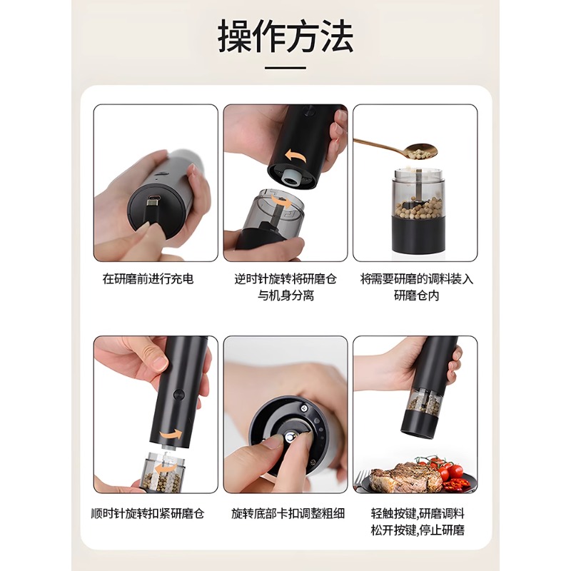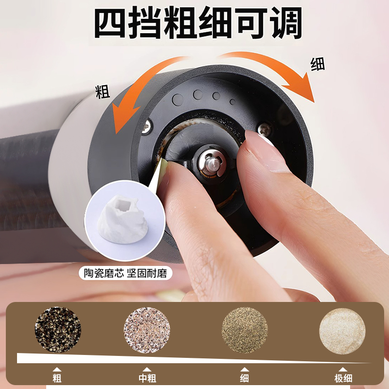 拜杰电动胡椒研磨器家用厨房调料瓶罐海盐胡椒粉磨黑胡椒粒研磨瓶