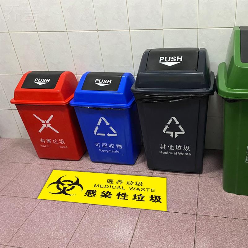 医疗垃圾分类标识牌医院感染性损伤性药物病理化学性废弃物暂存处提示贴纸废物种类标签医疗废物存放点标志