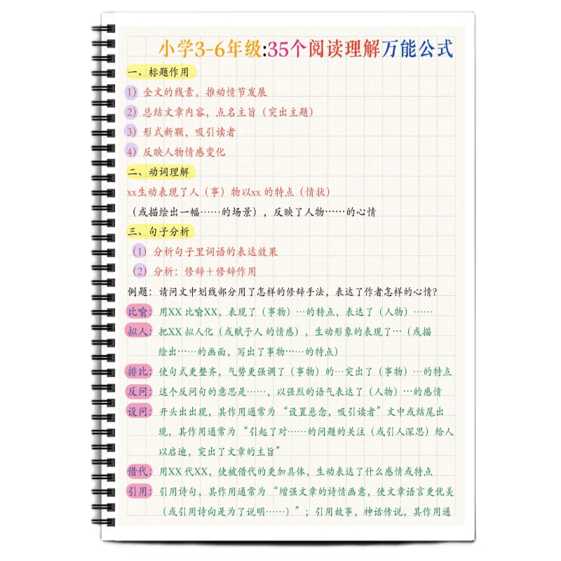 小学语文阅读理解35个万能答题公式3-6年级方法技巧句子分析题型解答全国通用老师推荐词语仿写总结