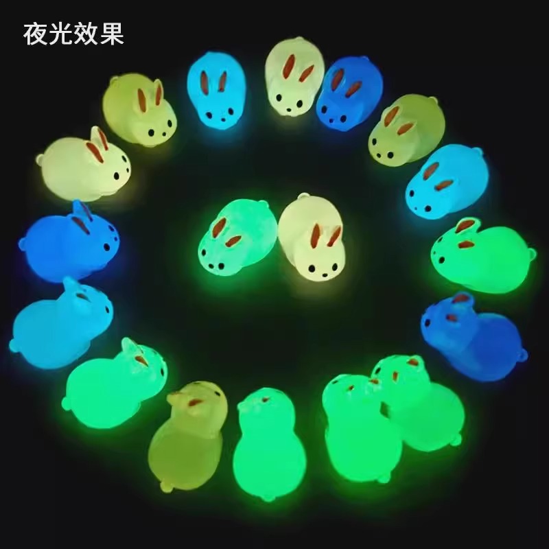 荧光小兔子装饰品公仔桌面摆件玩具水晶发光迷你小夜光物小动物件