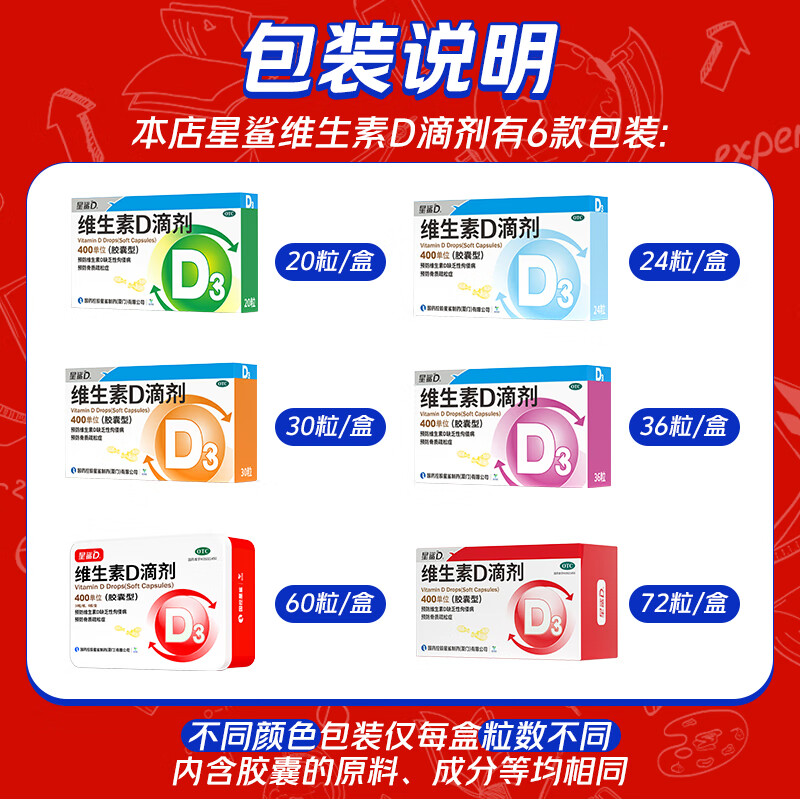星鲨维生素D滴剂维d胶囊佝偻病婴幼儿星沙维d宝宝1岁儿童维生素d