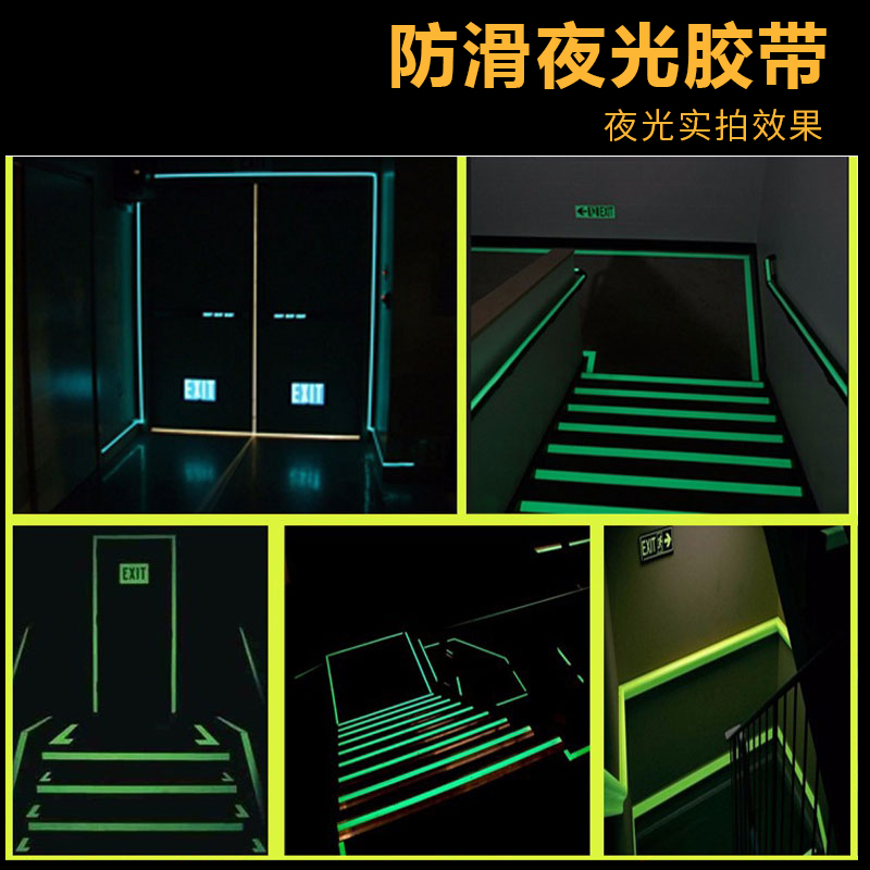 亚众 蓄光胶带 夜间发光警示贴 荧光胶带 夜光胶带 橙色绿色 夜间提示胶带持久 舞台酒店房间装饰发光条胶纸
