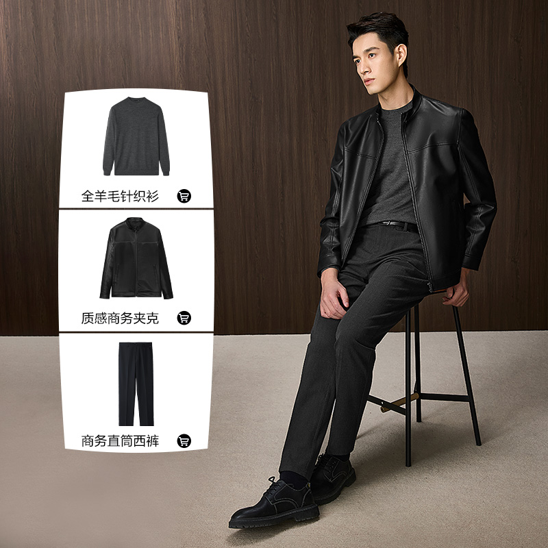 海澜之家轻商务复古立领PU皮夹克25秋新休闲时尚机车皮衣外套男装