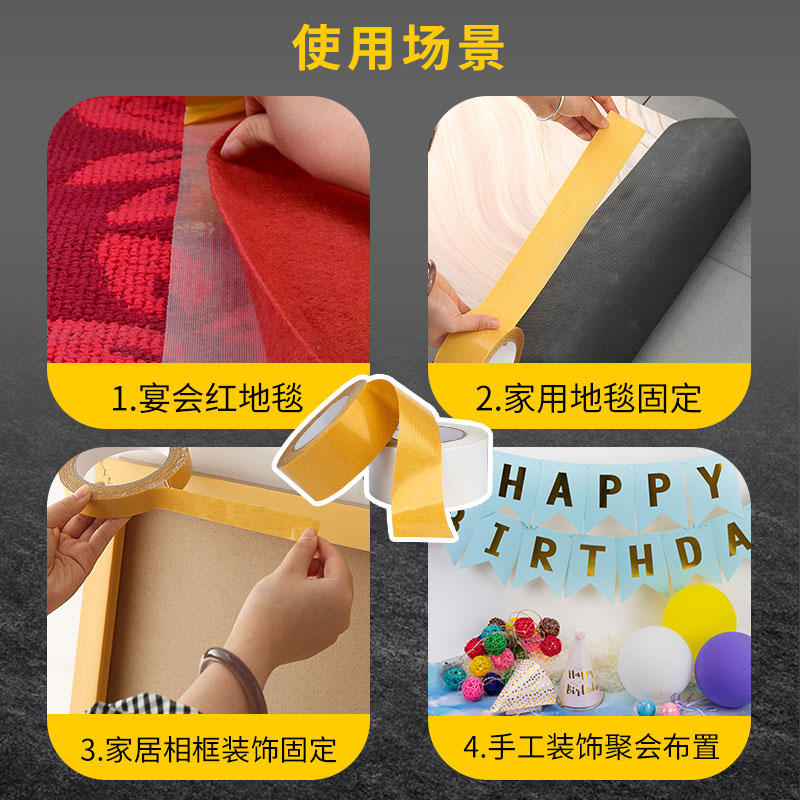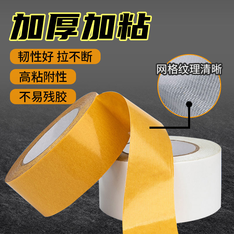 网格双面胶布基高粘度强力固定布地毯纳米魔力胶带婚庆酒店网格布纤维加厚防水耐高温地板革拼接不留痕黄色