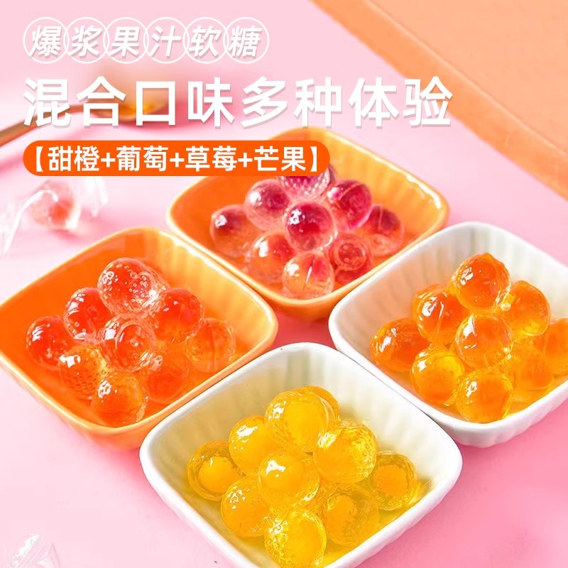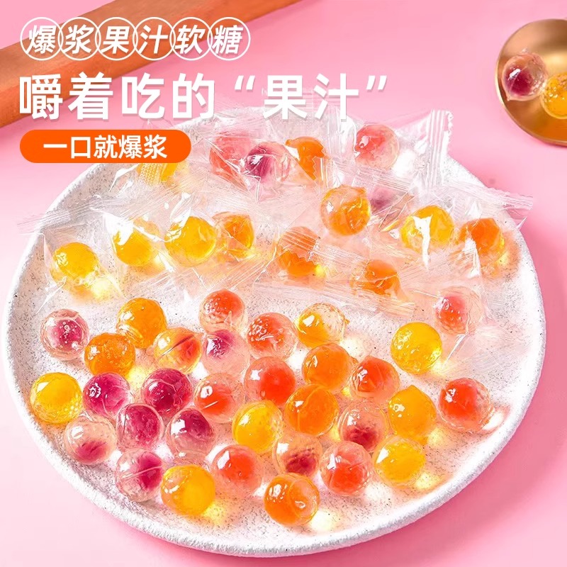爆浆果汁软糖果散装夹心橡皮糖水果味喜糖网红万零食圣节休闲小吃