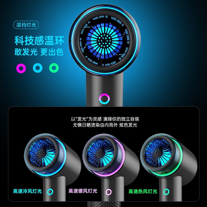 高速吹风机家用负离子护发大风力中空无叶速干降噪电吹风筒华强北