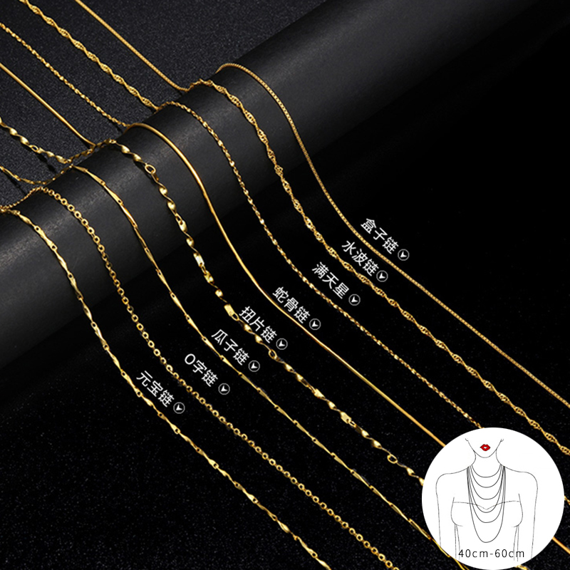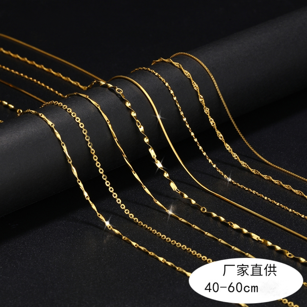 简约金项链女925银镀黄金色链子彩金素链细裸链锁骨链无吊坠配饰