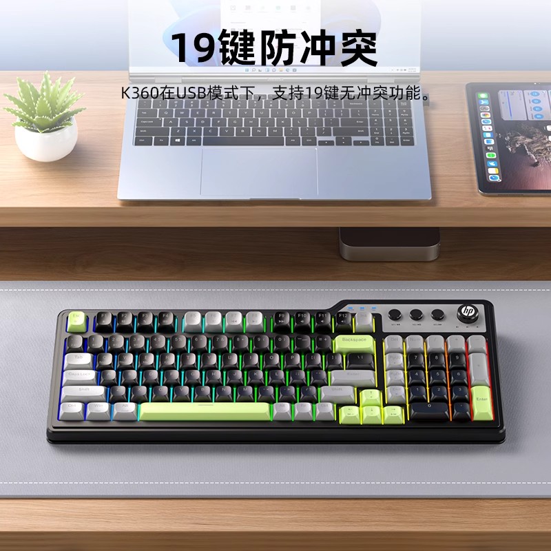 惠普无线三模键盘蓝牙键盘机械手感轻音K360游戏办公台式笔记本用