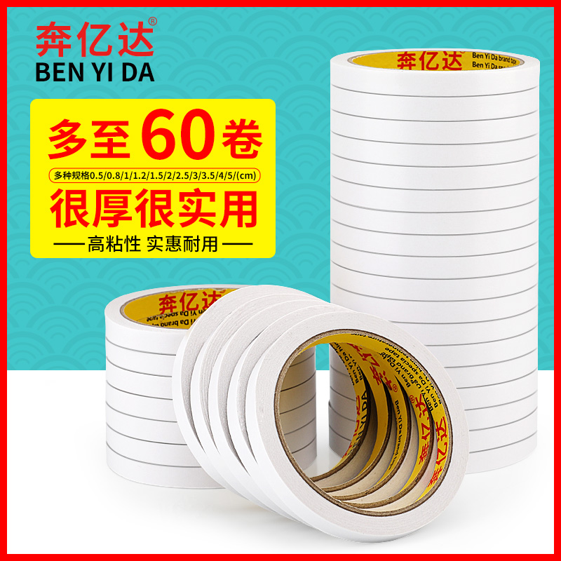奔亿达双面胶强力透明不留痕高粘度固定手工宽胶带摆件粘胶贴文具办公用品两面幼儿园双面胶带批发塑料粘性