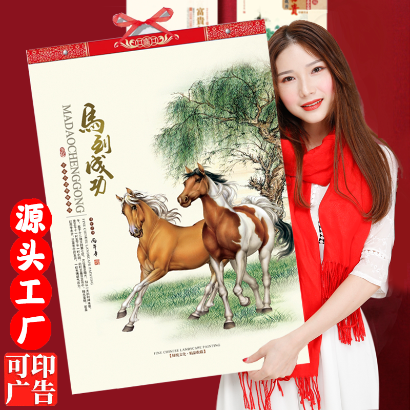 挂历2026年新款定制logo广告马年新年家用挂墙古风日历中国风鹄立