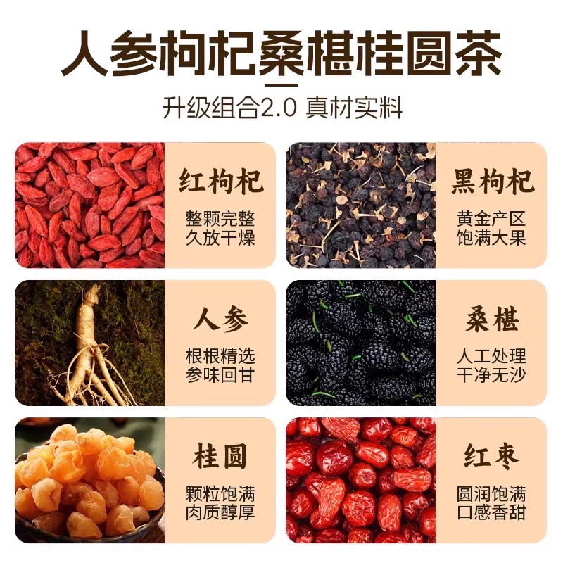 中国邮政六宝茶人参桑葚黑枸杞桂圆茶强肾补精官方旗舰店红枣冲泡