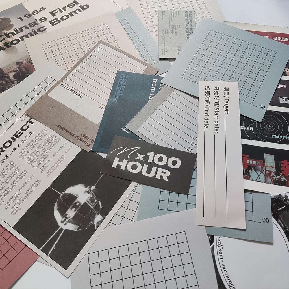 时间开物Nx100小时打卡拼贴风素材包卡片手帐计划diy装饰贴纸ins