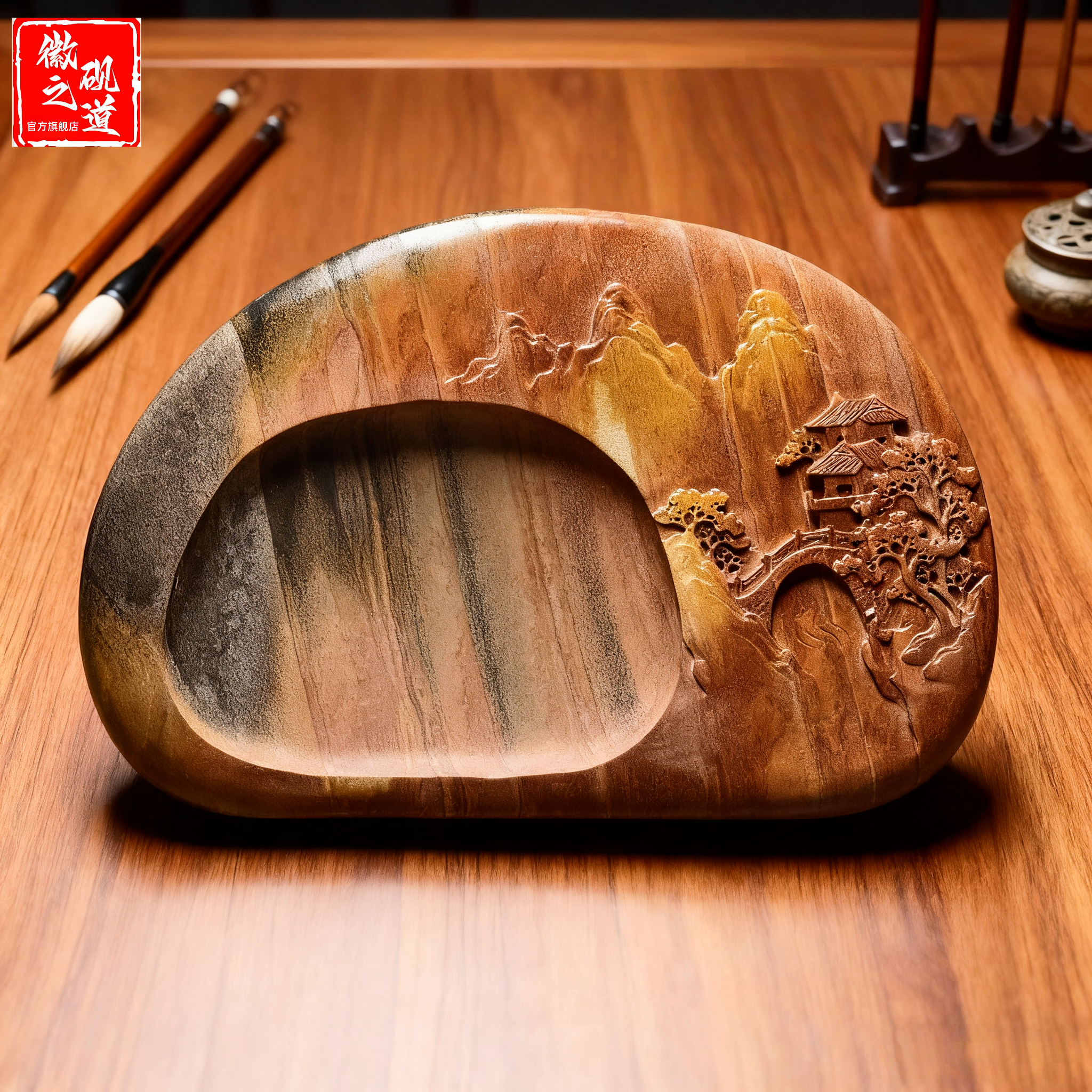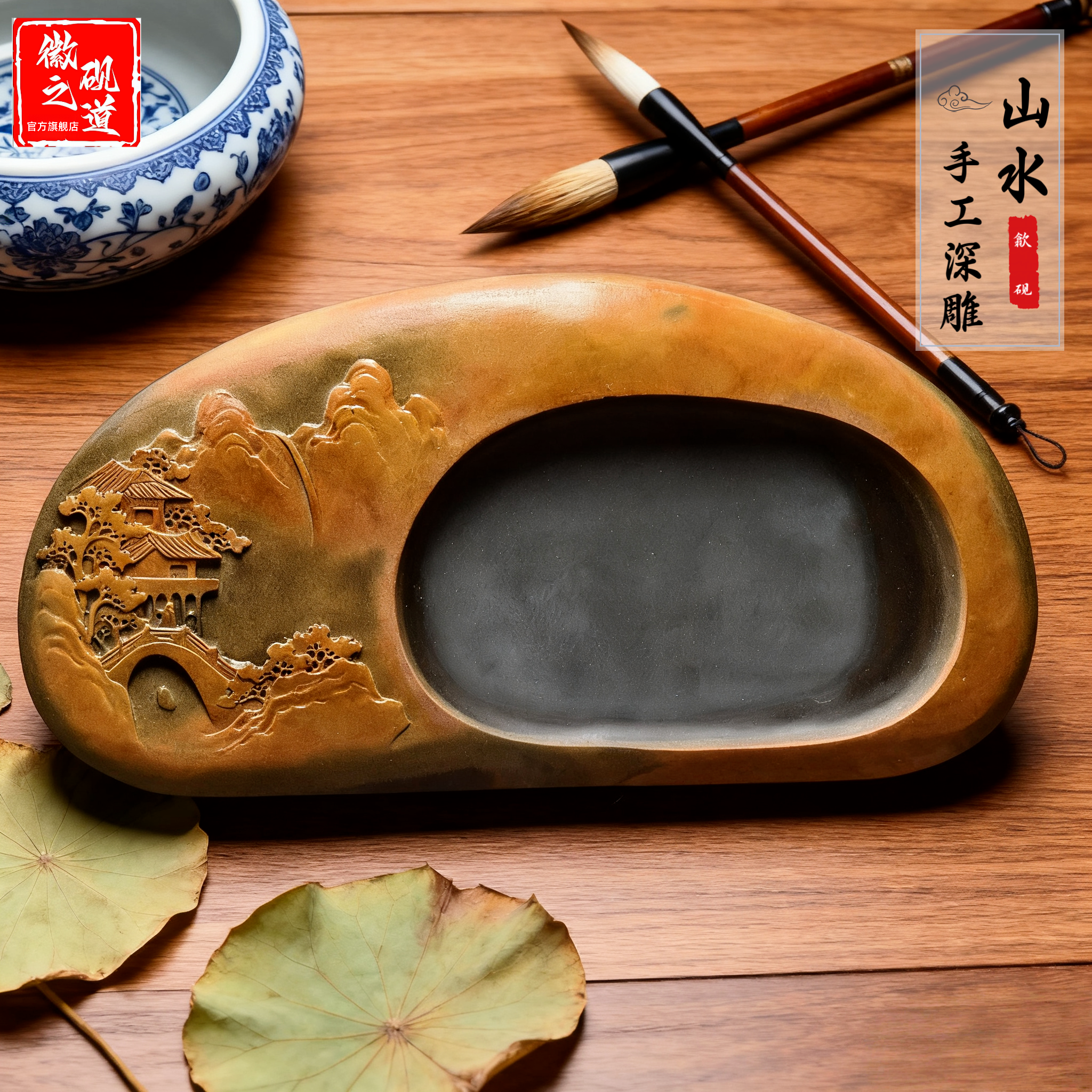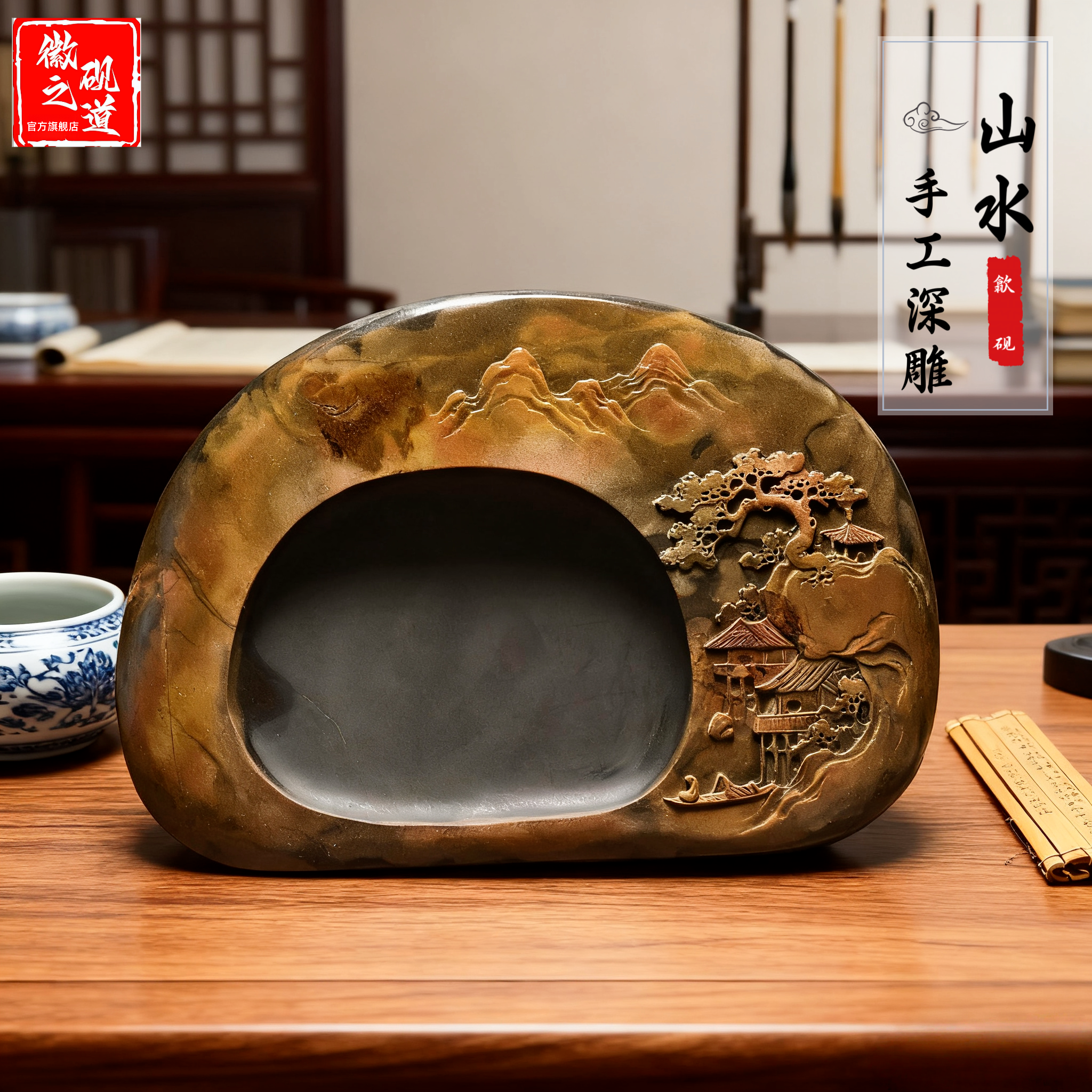 砚台传统歙砚山水纯手工雕刻锦集(一物一拍)收藏赠礼品书法研墨