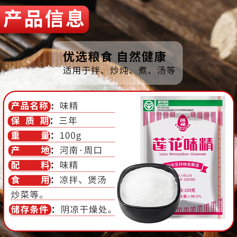 莲花味精100g*2袋家用纯粮无盐零添加炒菜煲汤凉拌调味料调料复合