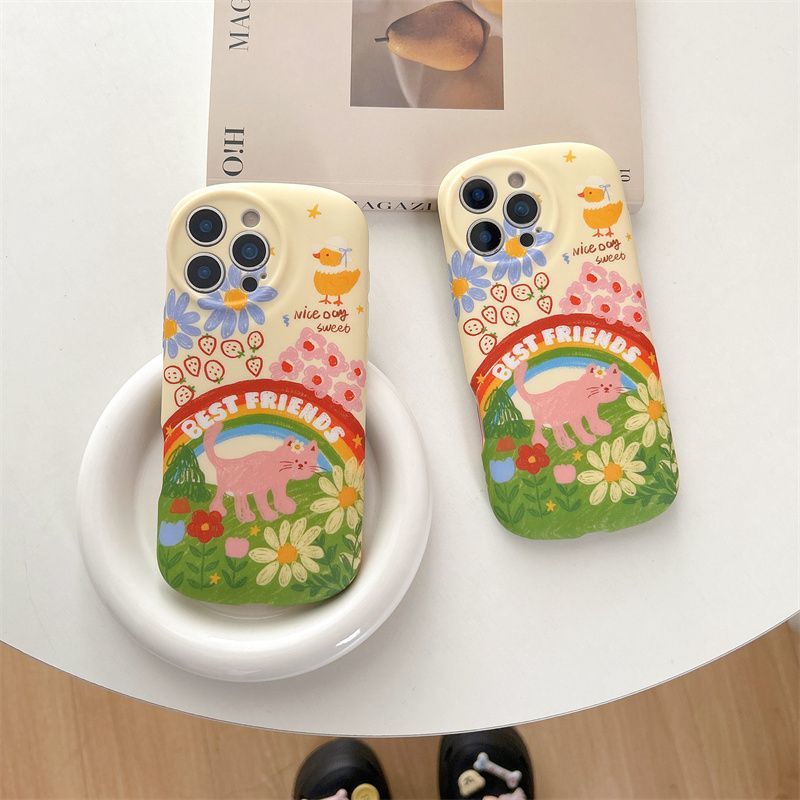 油画猫咪适用于苹果16手机壳iphone15高级感 14pro气囊防摔 13promax新款 16promax时尚女 15pro超好看保护套