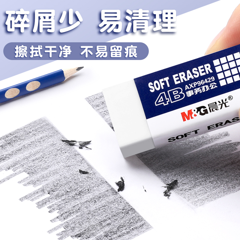 晨光4B美术绘画橡皮擦美术生专用无屑不留痕小学生安全橡皮擦得干净碎屑少易清理擦字成线PVC材质柔软不易断