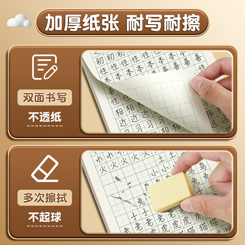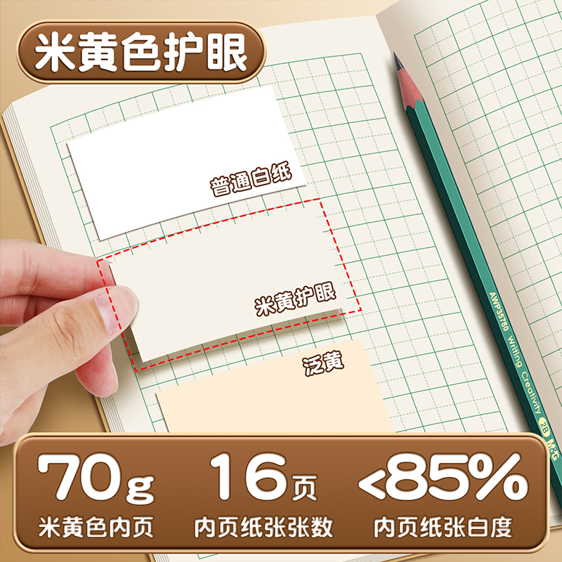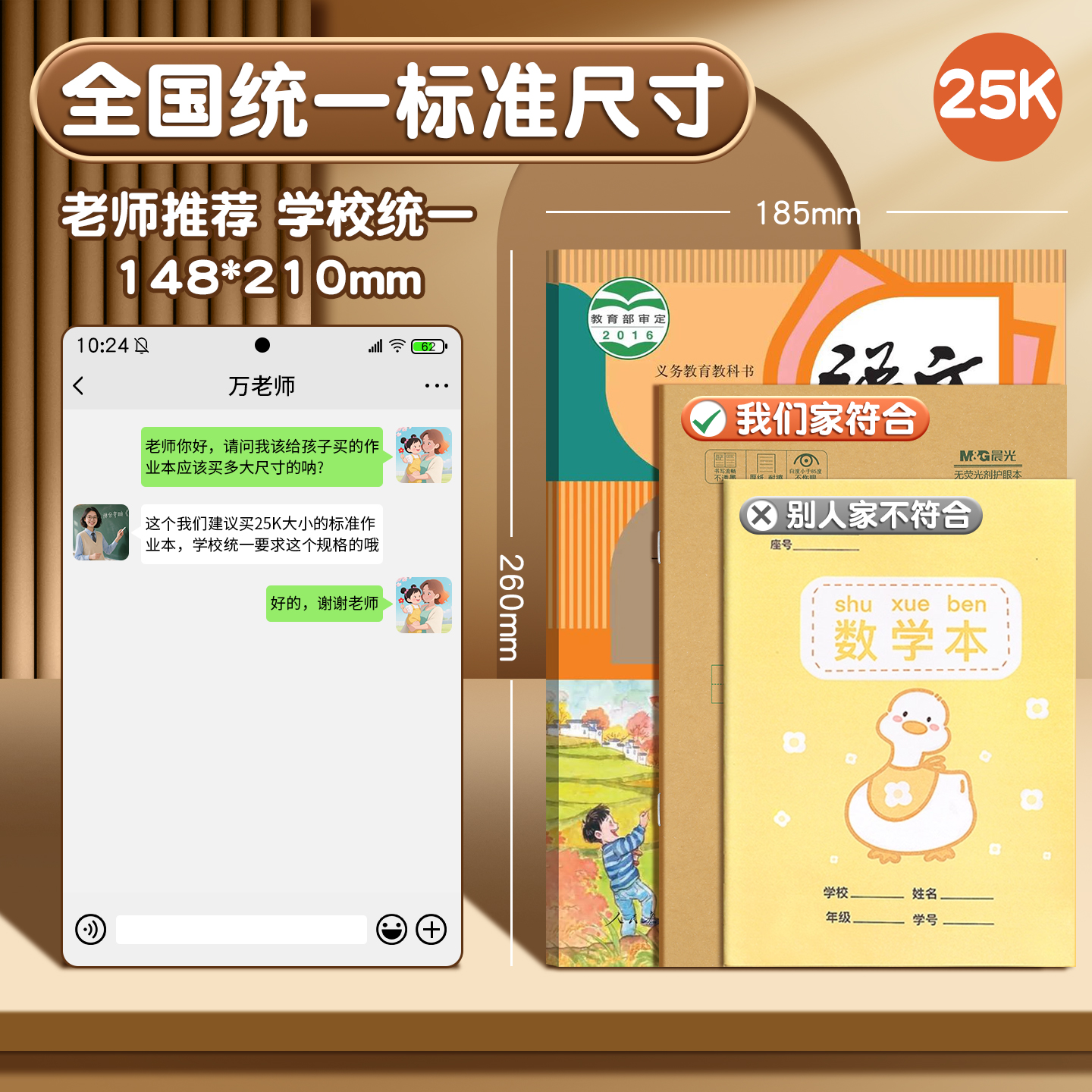 晨光田字本小学生专用一年级作业本拼音田字格生字数学语文英语本米黄内页牛皮纸加厚25K全国统一标准练习簿