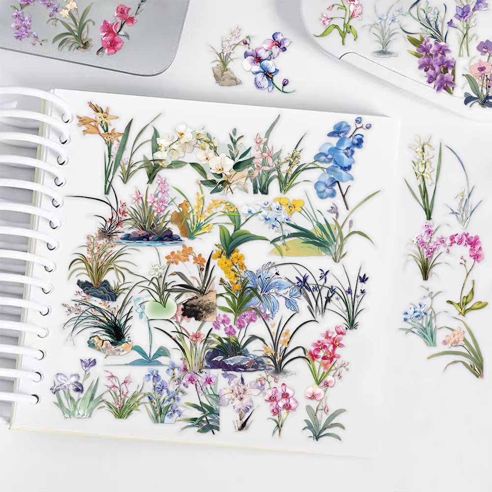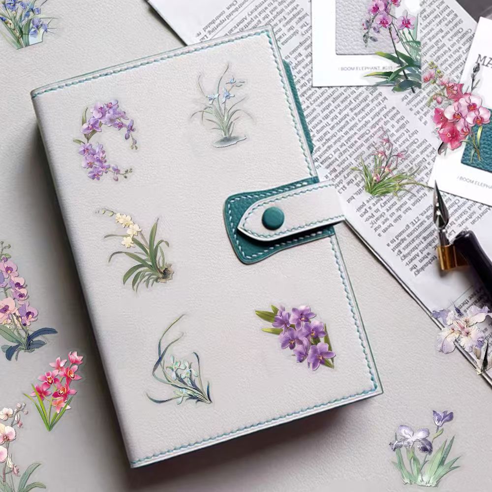 50张兰花贴纸小清新高颜值花卉diy手账手机壳素材装饰防水贴画