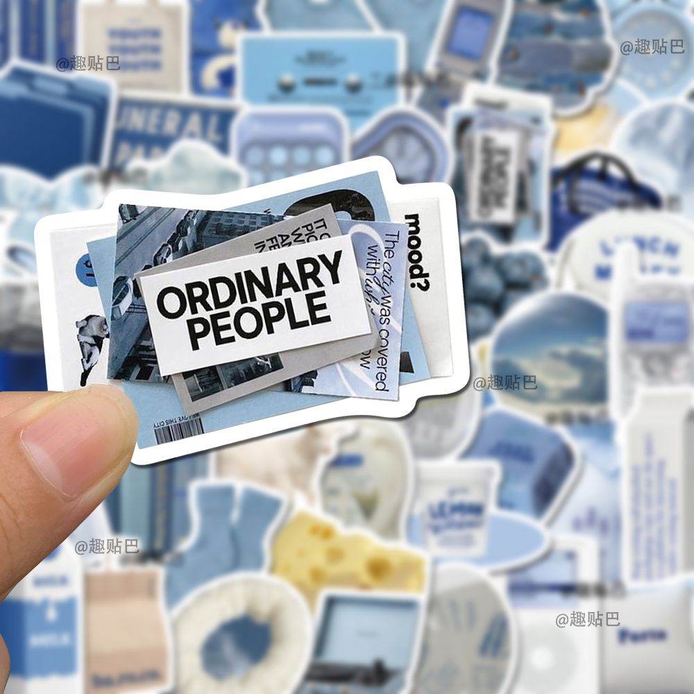 ins风贴纸227张防水装饰diy蓝色系不重复小众高级感可爱创意平板粘贴旅行箱
