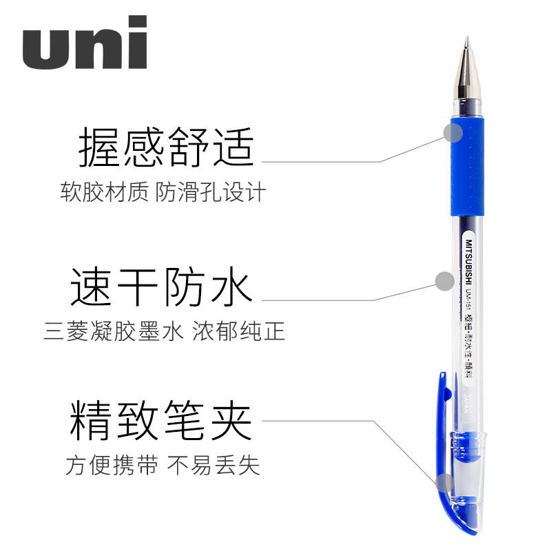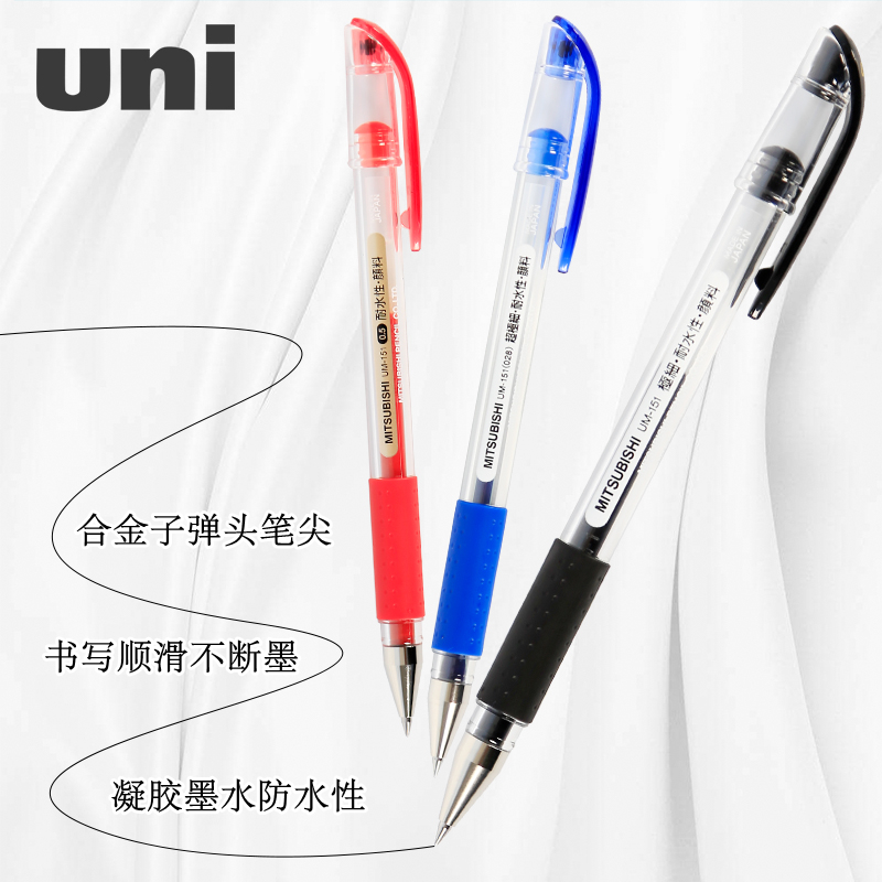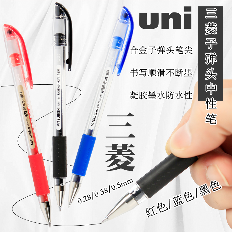 日本三菱uni中性笔UM-151超细0.28mm中性签字笔0.5mm办公书写0.38mm考试黑色蓝色红色老师改作业学生做笔记笔