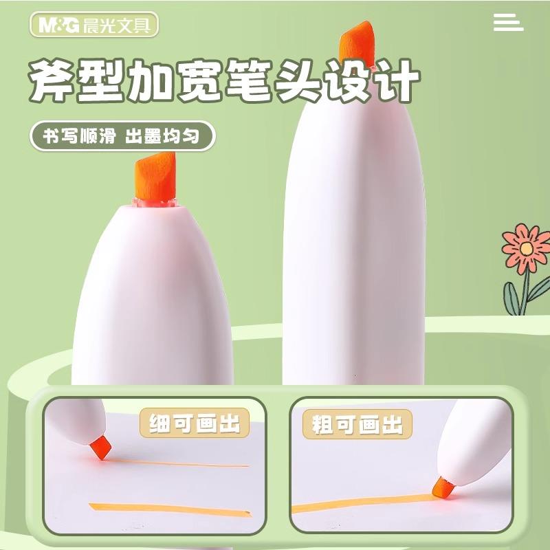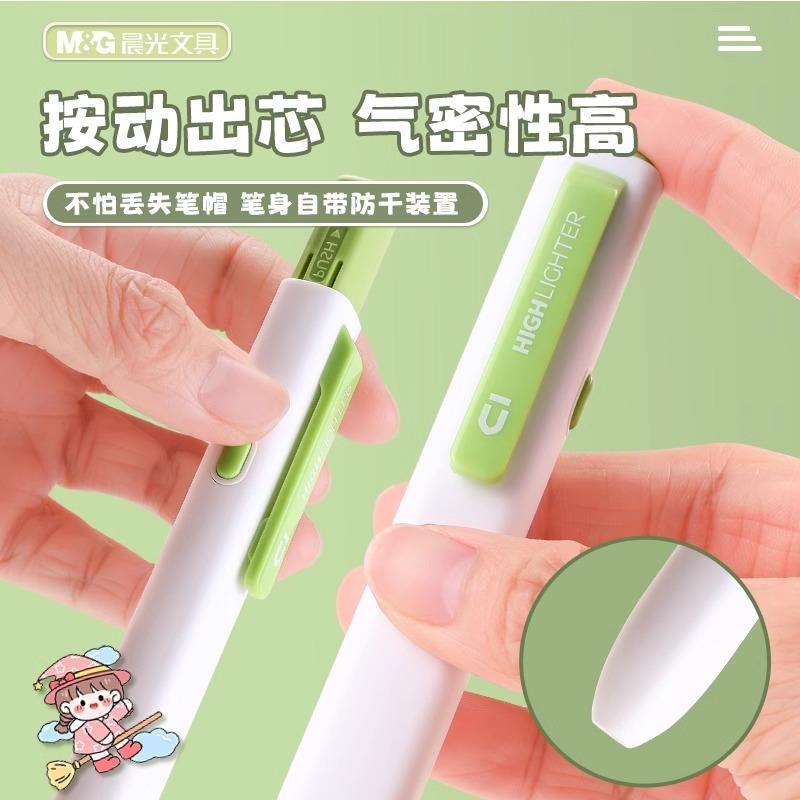 晨光按动荧光笔小学生专用划重点优品小方芯记号笔初中生专用高颜值彩色大容量笔记标记笔学习考研高中生文具