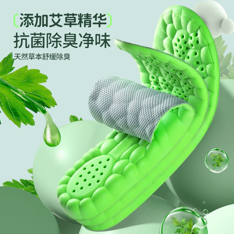 艾草防臭踩屎感运动鞋垫按摩男女通用军训舒适减震软底鞋透气垫子