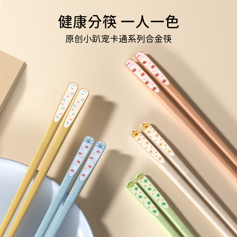 味家动物合金筷子家用高档抗菌防霉家庭分餐专人专用分人可爱防滑