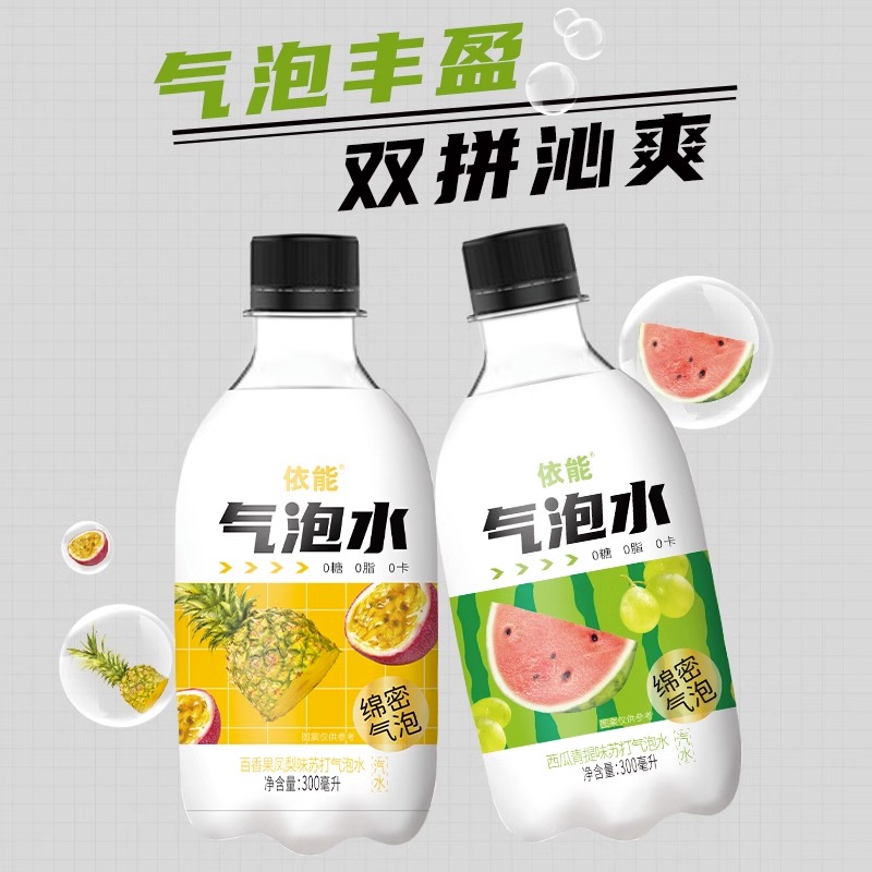 【好喝推荐】依能苏打气泡水饮料300ml*12瓶无糖碳酸气泡水多口味