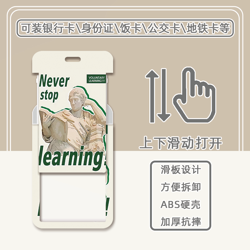 INS好好学习雕像卡套地铁校园公交饭卡保护壳卡套羊城通市民卡门禁卡接送卡工作证挂绳硬壳身份证出入证吊牌