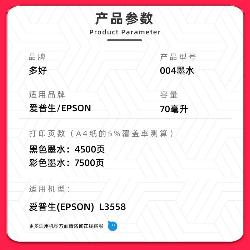 【L3558专用墨水】多好原装效果适用爱普生EPSON L3558彩色多功能一体机打印机正品墨水
