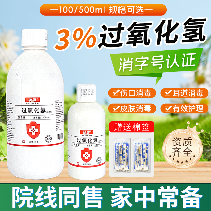 医用双氧水消毒液过氧化氢消毒水伤口耳洞滴溶液碘伏宠物杀菌棉签