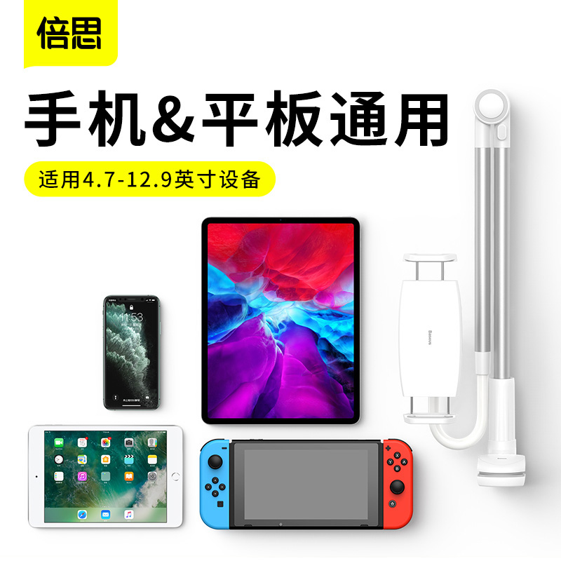 倍思手机架懒人支架ipad平板电脑床头床上用看电视神器网课直播万能通用桌面支撑架俯拍可折叠式稳固躺着夹子