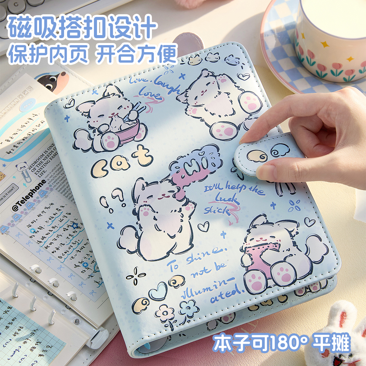 三年二班 可爱动物磁吸皮面搭扣本手账本日记本记事本每日计划本随身笔记本本子A5新款高颜值卡通日程本学生