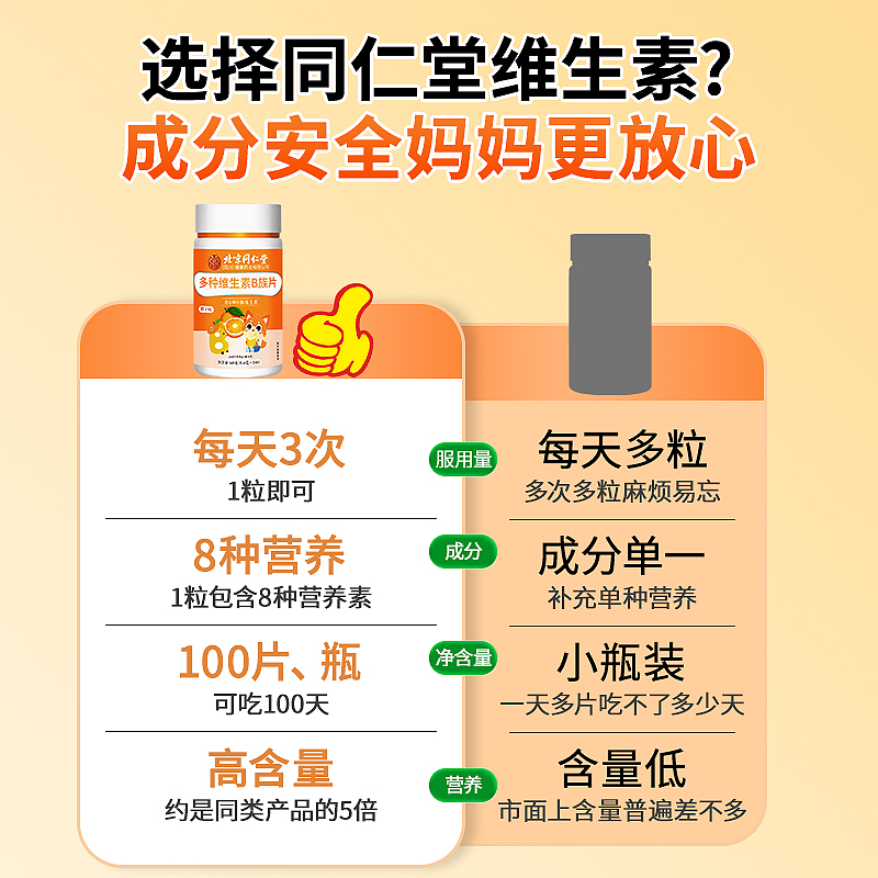 北京同仁堂多种维生素b族复合片儿童b12b6cd咀嚼片官方旗舰店正品