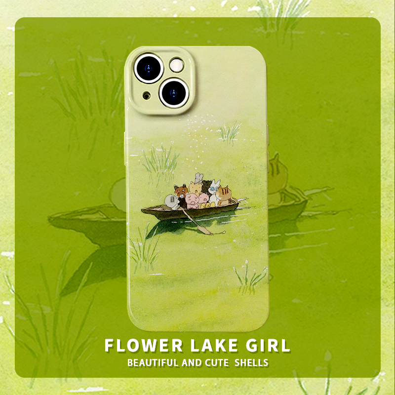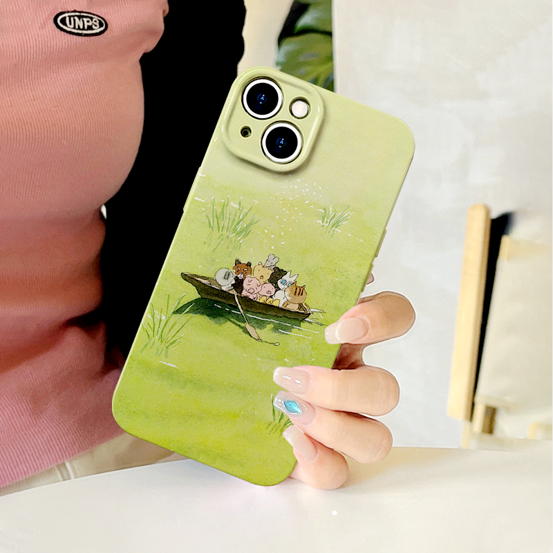 漂流记~湖中小动物们划船菲林适用iPhone15pro/14手机壳华为pura70畅享60OPPOreno9软vivo硬IQOO10小米14/13