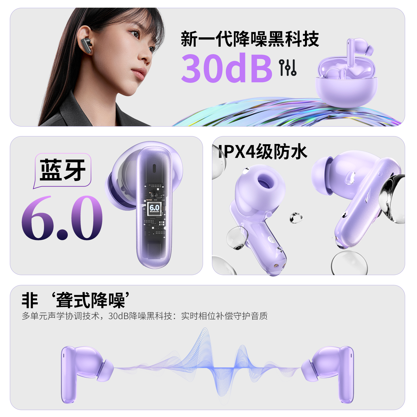 音贝奇Real1Pro无线蓝牙耳机主动降噪入耳式2025新款高音质长续航
