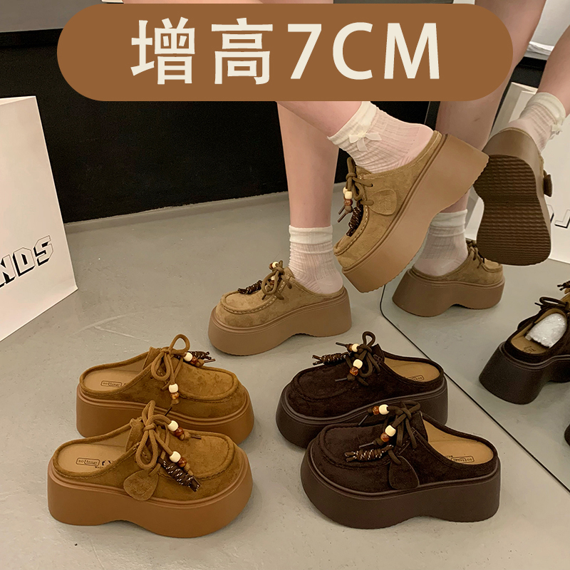 7cm厚底勃肯鞋女2025新款秋季女鞋一脚蹬穆勒鞋子增高博肯半拖鞋