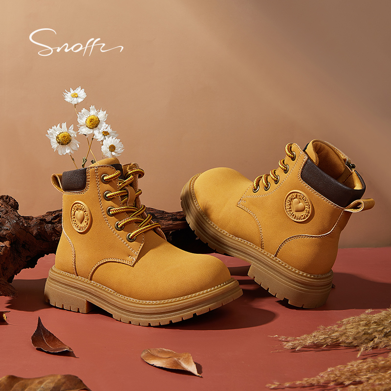 斯纳菲儿童马丁靴女童大黄靴2025年秋冬新款单靴时尚百搭短皮靴子