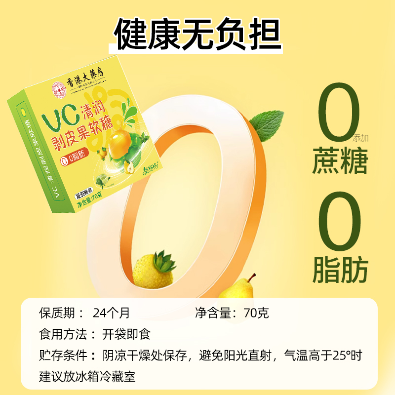 香港大药房VC清润剥皮果软糖1盒70克起多规格可选