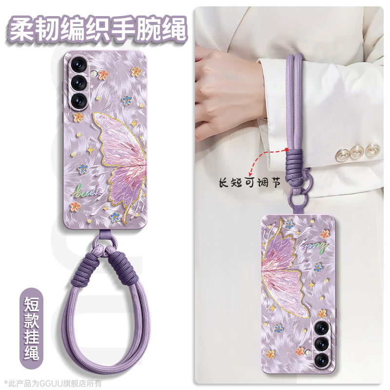 油画蝴蝶适用三星S25手机壳S25ultra套plus新款全包S24高级感samsung硅胶Galaxy防摔+端S23女的S22腕链带挂绳