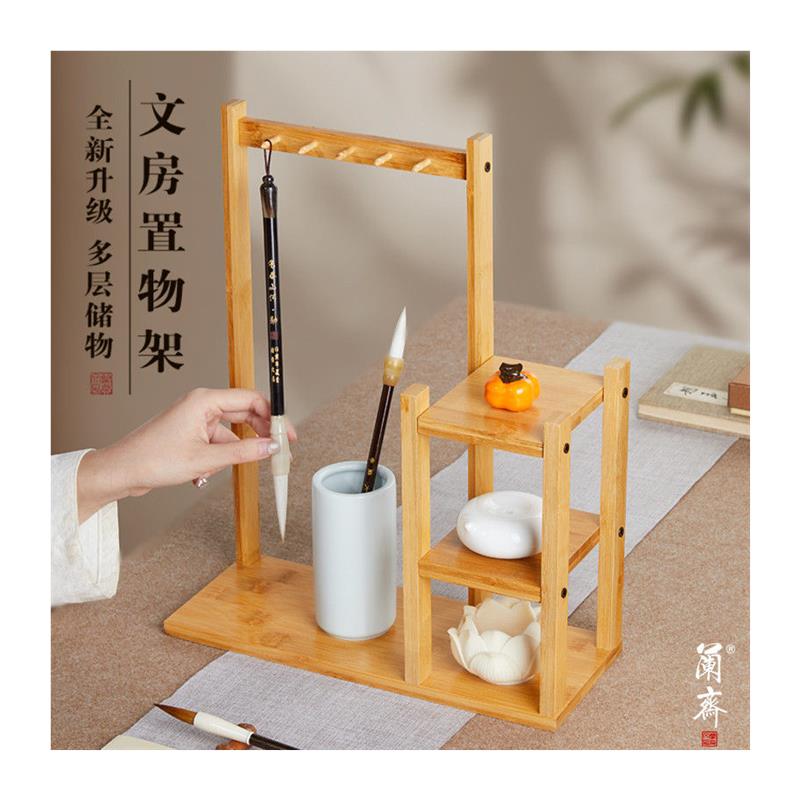 兰斋置物笔架创意多功能收纳架楠竹文房四宝初学者书法专用毛笔架