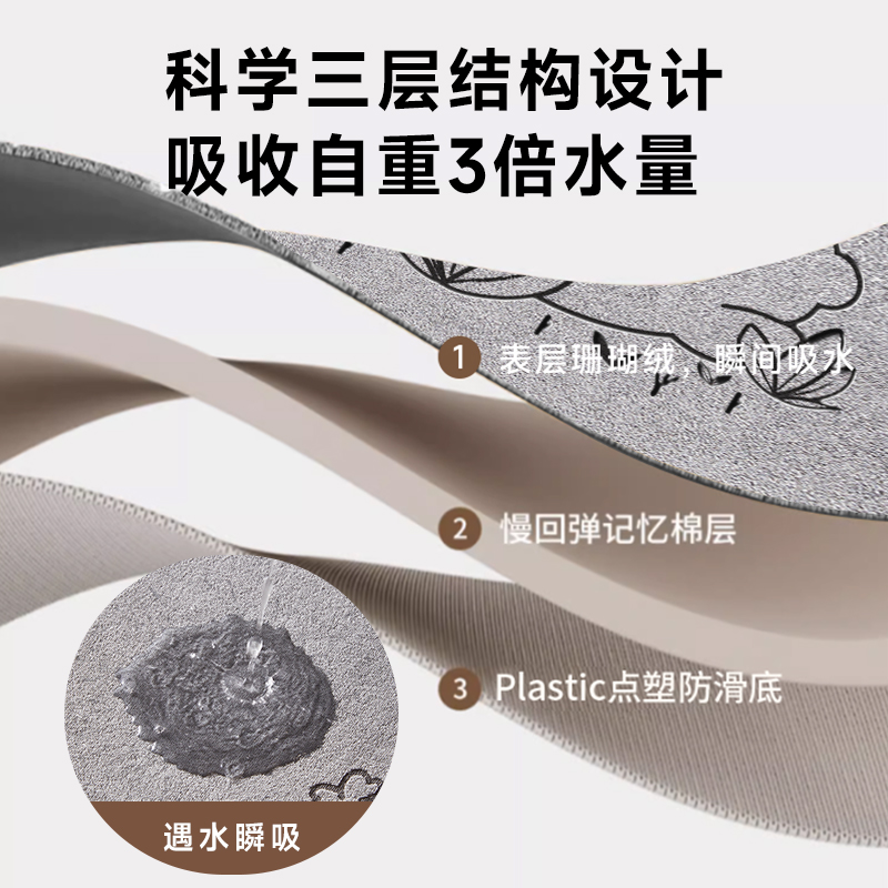 硅藻泥吸水地垫浴室卫生间门口进门入户防滑脚垫子洗手间厕所地毯