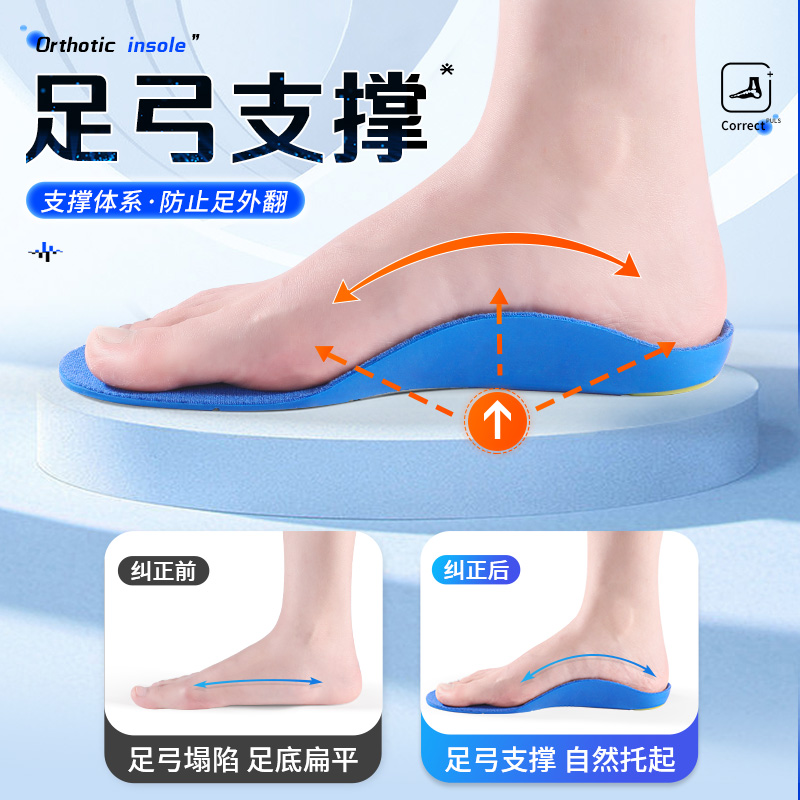扁平足矫正鞋垫xo型腿足底矫形足内外翻矫正器高足弓支撑鞋垫儿童