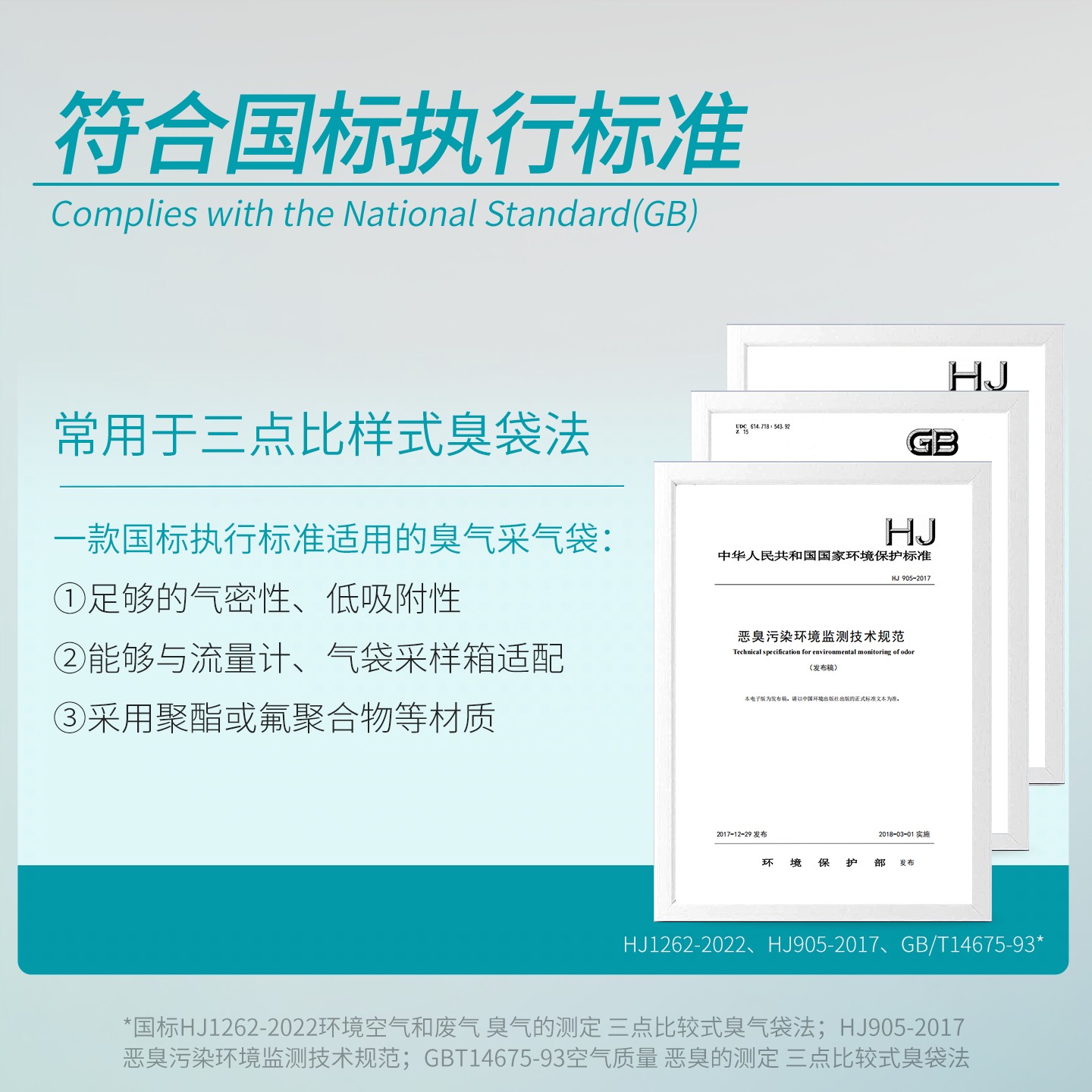 臭气采样袋嗅辨袋三点比样式有组织恶臭采气袋污染源气体集气袋3L5L10L聚酯无臭袋不锈钢接头臭气浓度采集袋