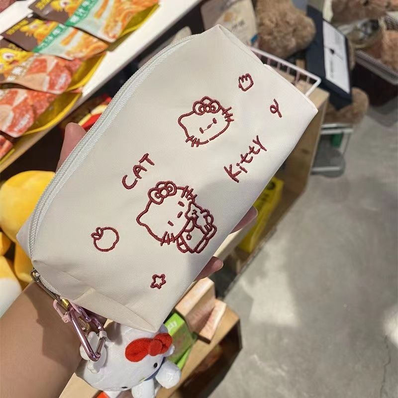 ins刺绣卡通笔袋可爱少女文具盒文具大容量学生高颜值收纳袋