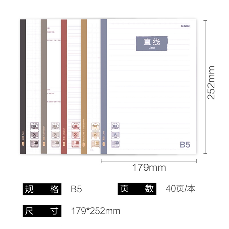 晨光笔记本子 B5米黄横线内页笔记本作业登记本缝线本子A5小学生笔记刷题便携简约可爱记事本