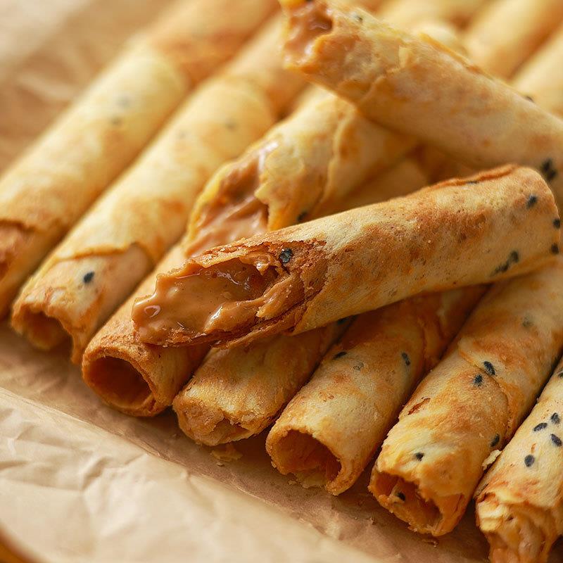 榛子巧克力夹心蛋卷饼干海盐花生味注心鸡蛋卷办公室零食