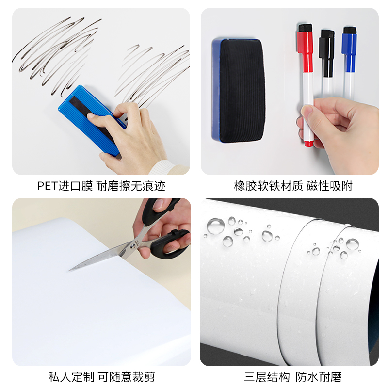 可擦磁性软白板墙贴可移除写字板儿童涂鸦画板家用黑W板办公室墙